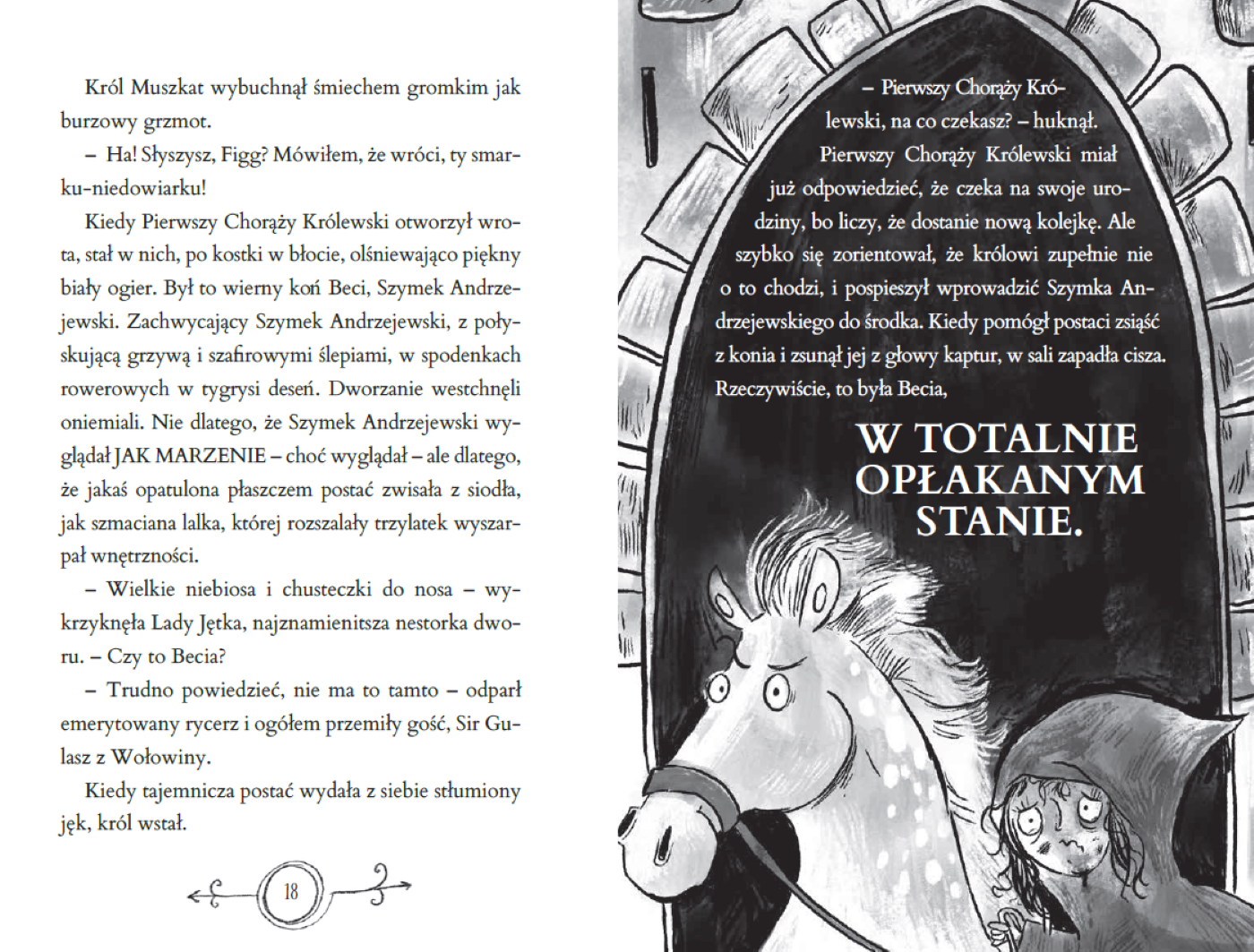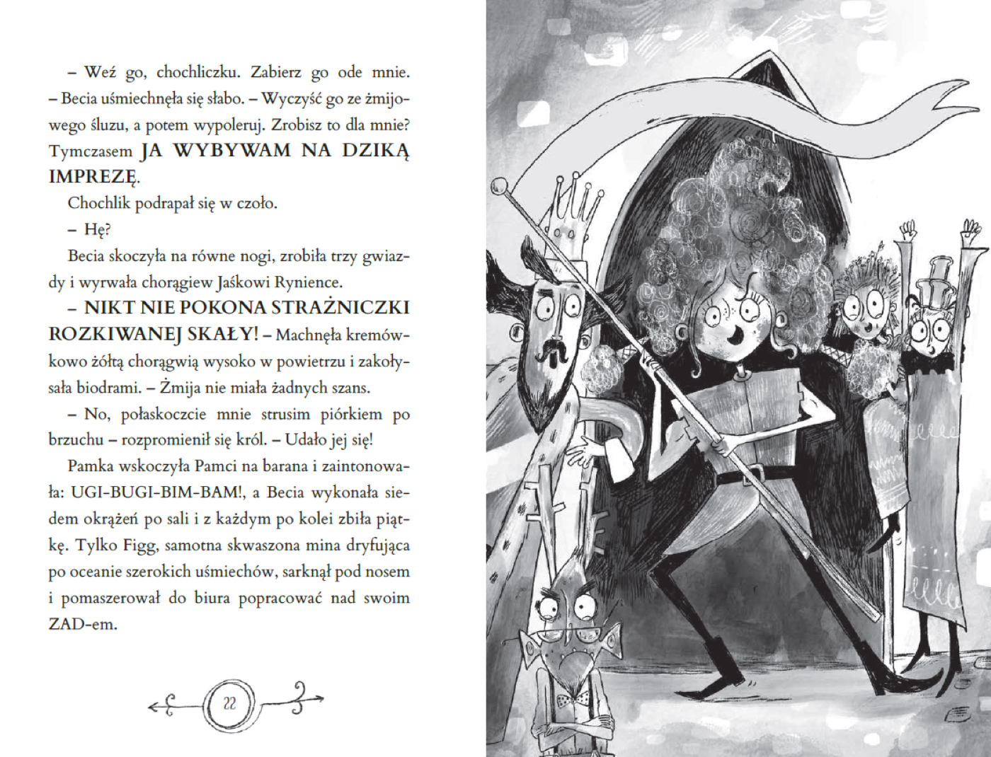 Dołącz do niezwykłych obrońców Rozkiwanej Skały i poznaj Becię, chochlika Figga oraz konia Szymka Andrzejewskiego, który jak nikt prezentuje się w rowerowych spodenkach w tygrysie paski. Dzięki tej opowieści staniecie się szczęśliwi jak gumki do włosów i liźniecie przygodę po paznokciach u nóg!
